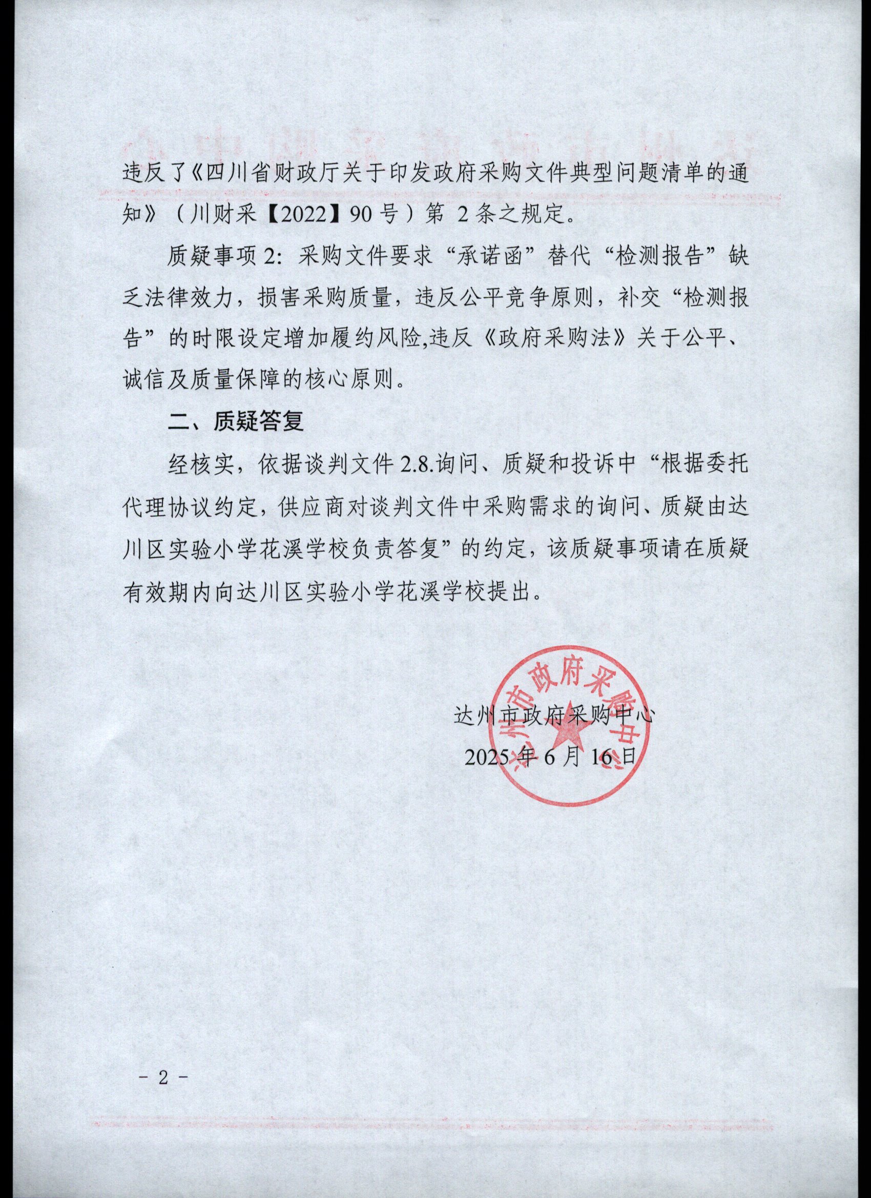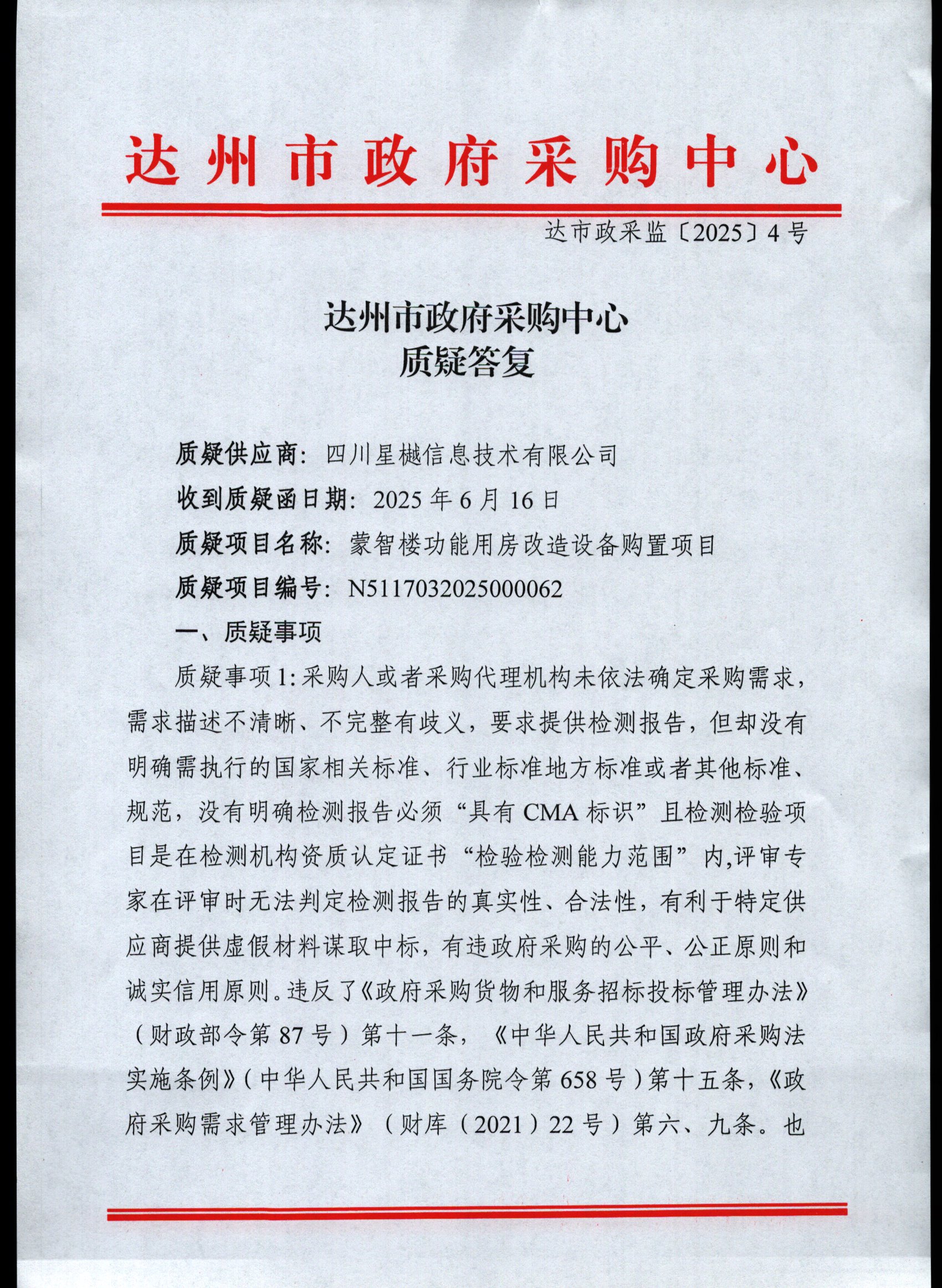质疑答复