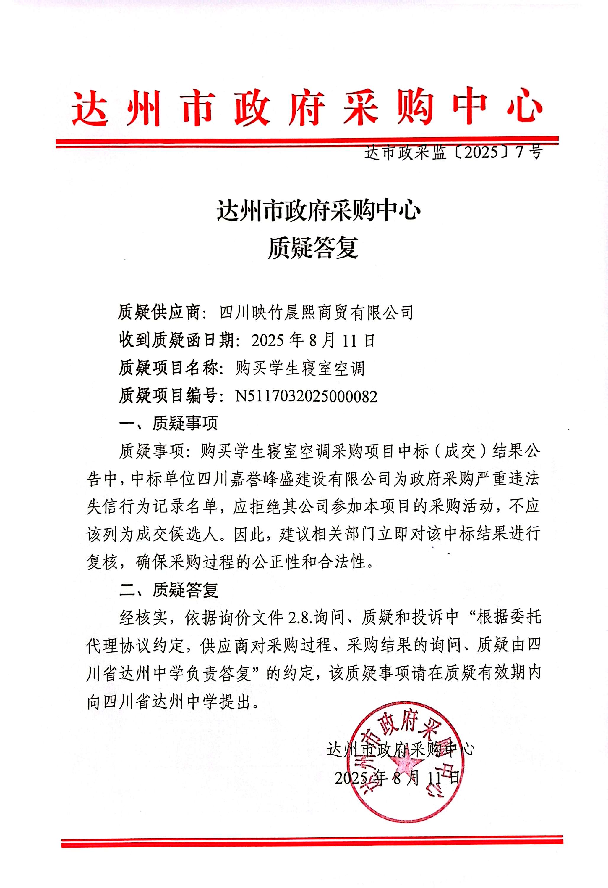 四川省达州中学购买学生寝室空调质疑答复.pdf