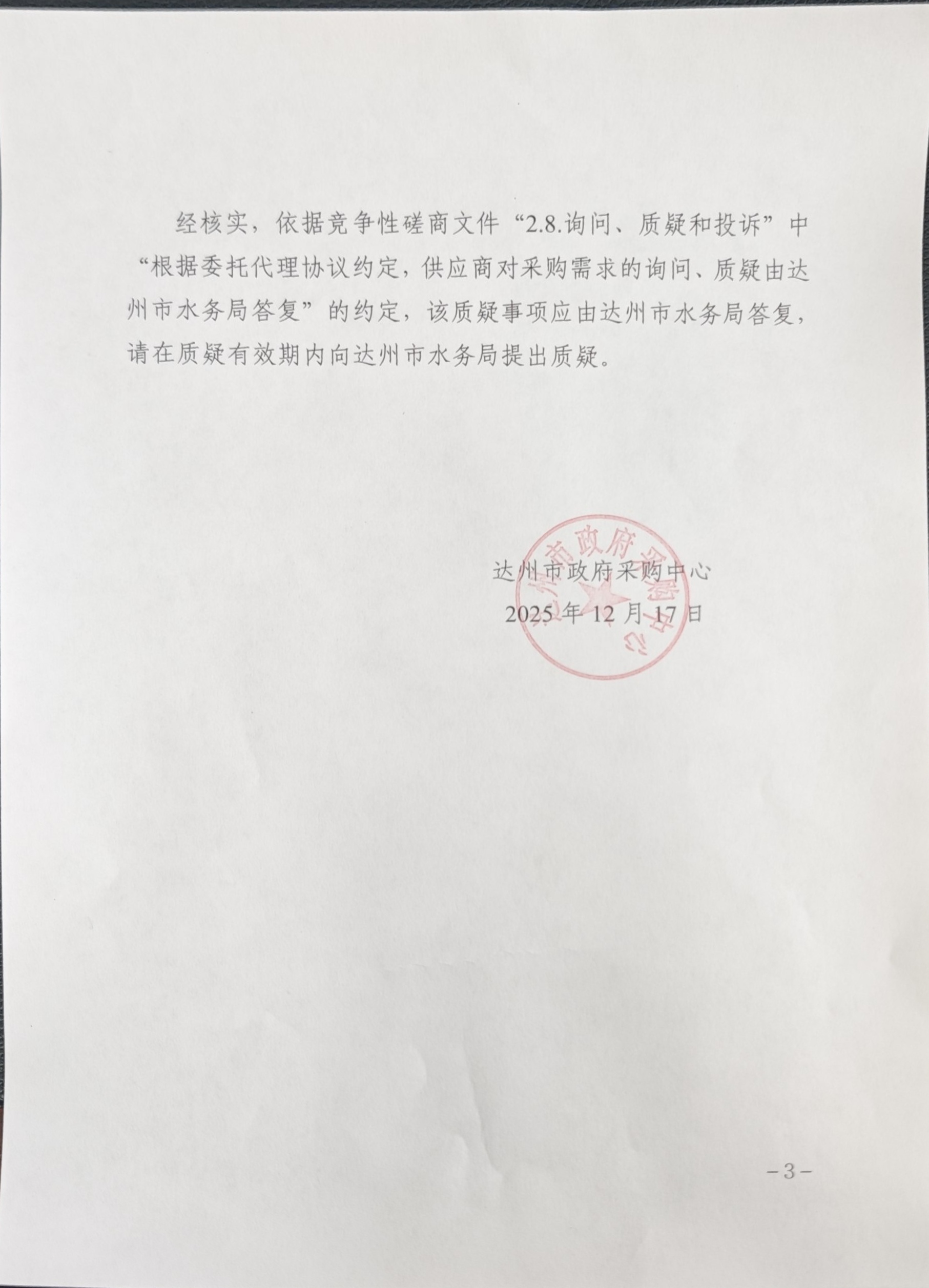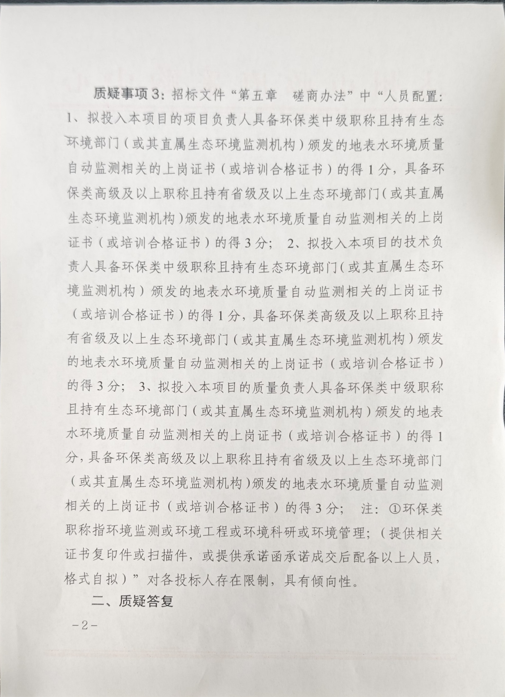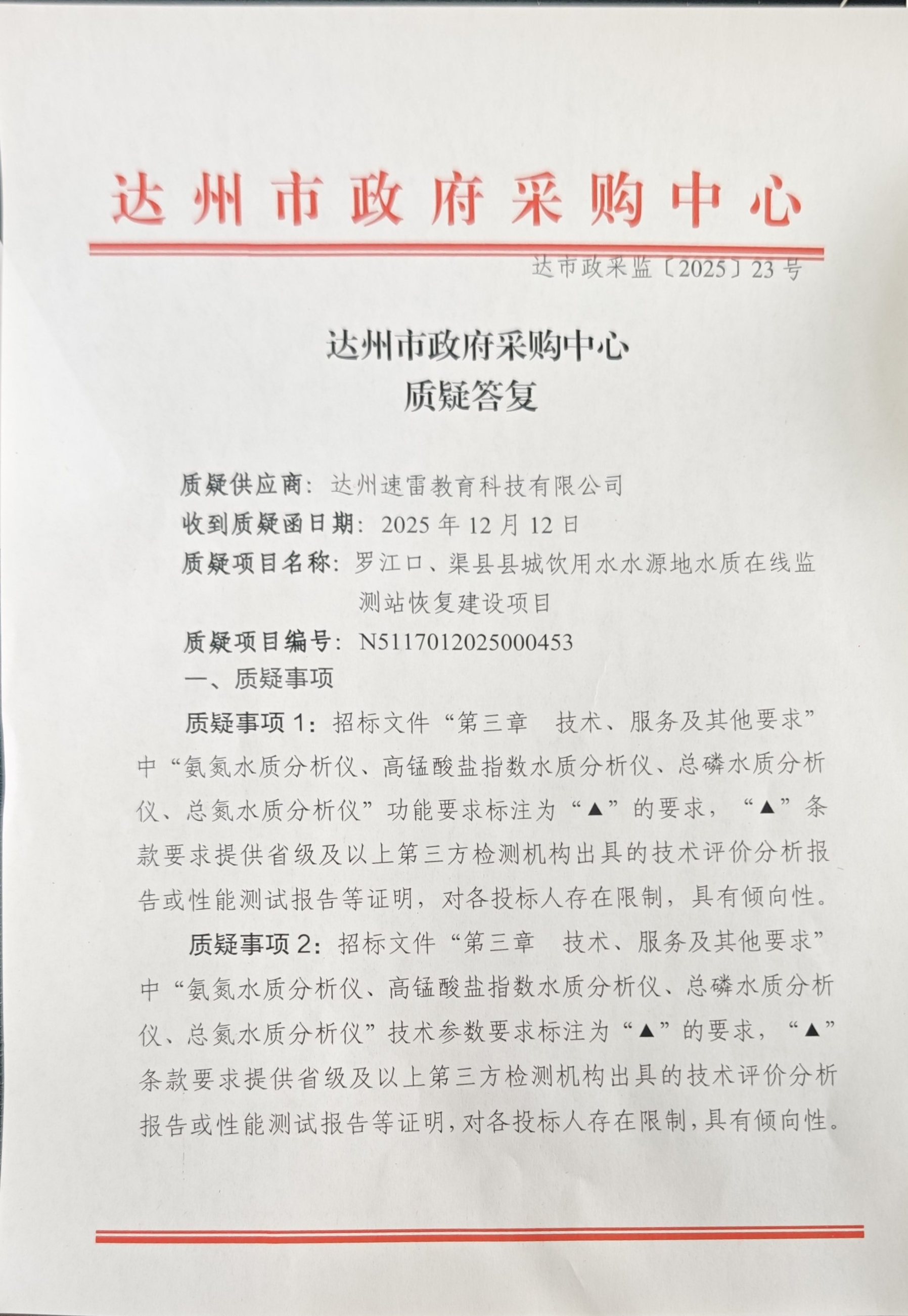 罗江口、渠县县城饮用水水源地水质在线监测站恢复建设项目质疑答复